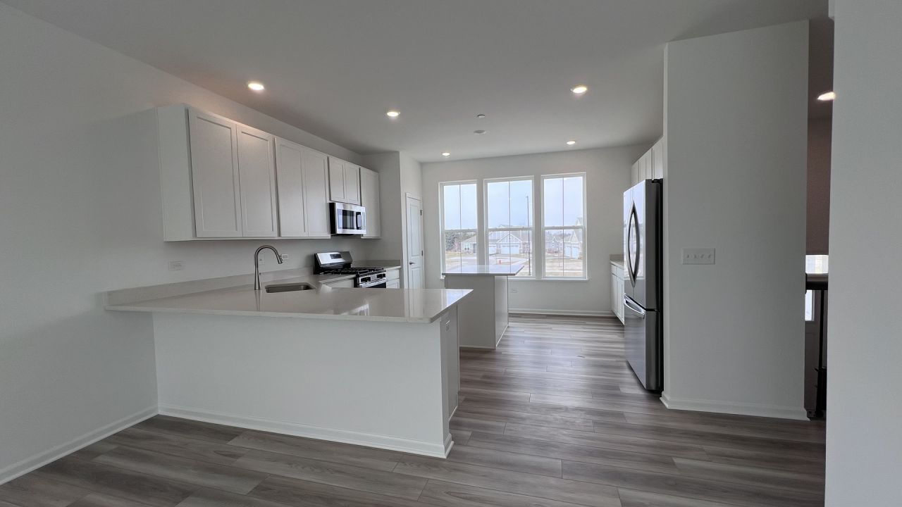 Be the first to live in this brand-new construction townhome located in the desirable Regency Square community in Huntley. This spacious home features 3 bedrooms, 2.5 bathrooms, plus a versatile lower-level bonus room-ideal for a home office, gym, or additional living space. The main level offers an open-concept layout with modern finishes throughout, seamlessly connecting the kitchen, dining, and living areas. The kitchen features 42 cabinetry, quartz countertops, an island, and high-end appliances. The upper level includes a primary suite with a walk-in closet and private bath with dual sinks and a walk-in shower, along with two additional bedrooms, a full bath, and second-floor laundry for added convenience. This townhome offers the convenience of a spacious two car garage, providing plenty of room for parking and extra storage. Conveniently located near downtown Huntley, parks, shopping, and dining.